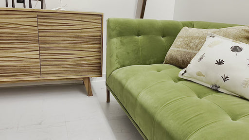 Mid century modern style credenza made using pine wood and parota wood veneer. Light and sturdy construction Note: wood grains and pattern may vary...