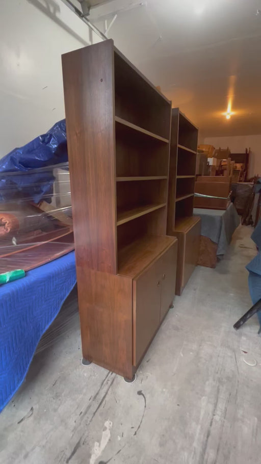 Vintage Mid Century Modern 2 Piece Walnut Hutch Or Record Cabinet Credenza From Belgium Dimensions. Over All. 36 W ; 72 H ; 16 D Right Compartment....