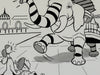 Description : Look out! Emile and his dog, Bernard, discover the famous mechanical elephant from the city of Nantes on a bicycle adventure through France in this 10x10-inch black and white print illustration on card stock paper from the “Détours de France” series.