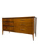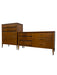 This original 1960s Broyhill Premier Saga three-piece bedroom set includes the matching highboy dresser, long 6-drawer dresser,and coordinating nightstand from one of the most iconic Mid-Century Modern American furniture lines. Known for its carved starburst motifs,tapered legs, clean architectural lines, and warm walnut-toned finish, the Saga collection remains highly collectible for its craftsmanship and distinctive styling.