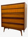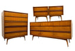 Vintage Mid-Century Modern 4-Piece Bedroom Set - 9-Drawer Lowboy Dresser, Tall Highboy Dresser & Pair of Nightstands with Sculpted Pulls and Dovetail Drawers