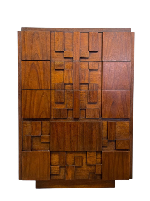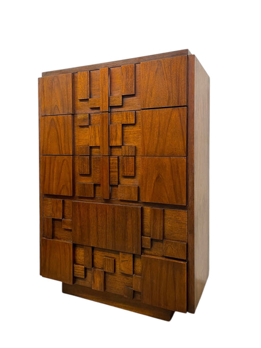 Vintage Brutalist Highboy Dresser by Lane Furniture, 1970s