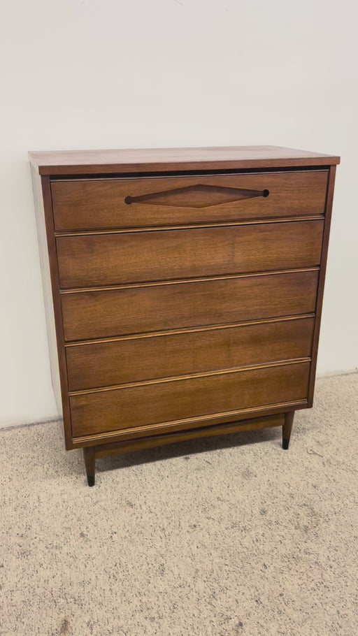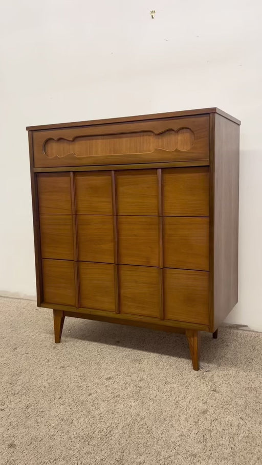 Vintage Mid Century Modern 5 Drawer Highboy Dresser with Sculpted Drawer Fronts