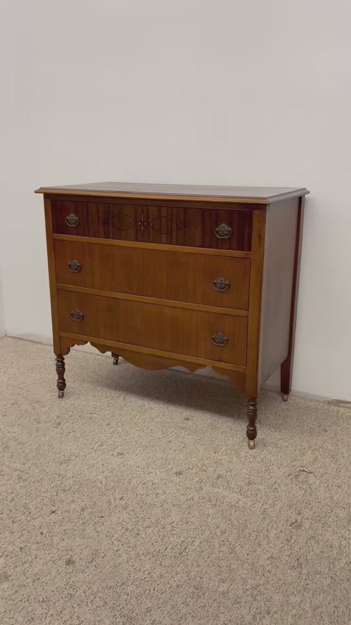 Antique Early 20th Century Walnut Toned 3-Drawer Dresser by John Furniture Company
