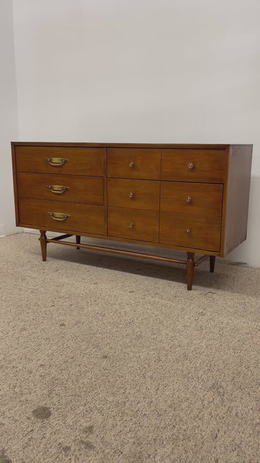 Vintage Mid-Century Modern 6-Drawer Walnut Dresser with Brass Toned Hardware