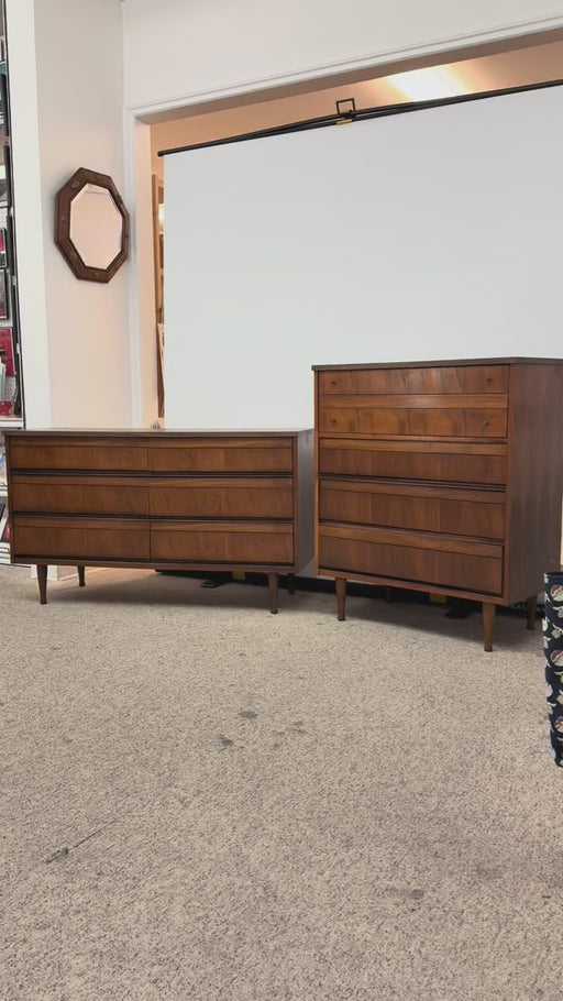 Vintage Mid-Century Modern Walnut Dresser Set - 6 Drawer Lowboy & 4-Drawer Highboy Chest of Drawers