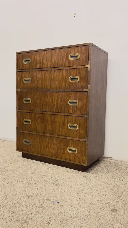 Vintage Dixie Campaign Style 5-Drawer Chest with Brass Toned Hardware