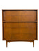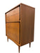 The back panel retains original factory markings. Overall, the piece presents well and offers a timeless, versatile storage solution suitable for a bedroom, entryway, or living space.A strong example of mid-century craftsmanship, this dresser blends utility with classic design elements that continue to appeal to collectors and modern interiors alike.