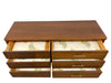 The left side showcases three drawers with the signature star motif, offering striking visual texture. The right side includes three full-width drawers with sleek brass-toned pulls that complement the minimalist profile. All six drawers glide smoothly and retain their original interiors. The interior also includes the original "Saga by Broyhill Premier" label.