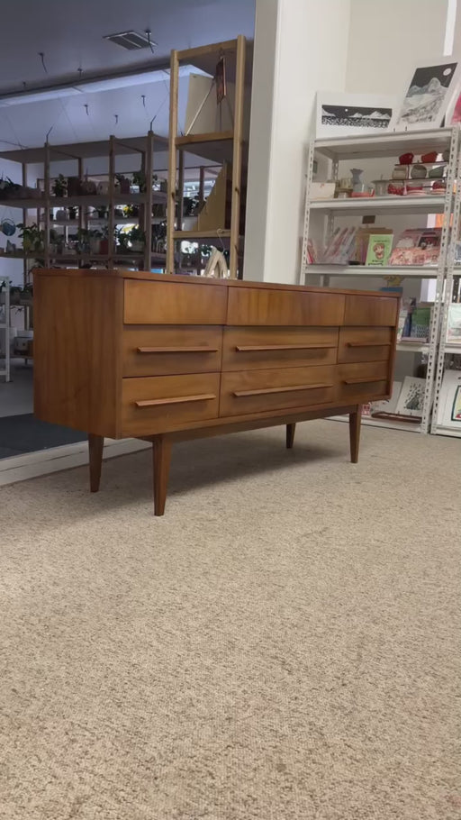 Vintage Mid Century Modern Walnut 9 Drawer Dresser Dovetailed Drawers with Solid Wood Drawer Pulls