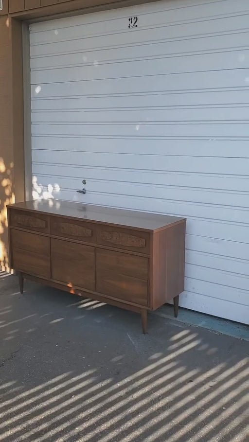 Vintage Mid Century Modern Solid Walnut Dresser by Broyhill Premier Sculptra