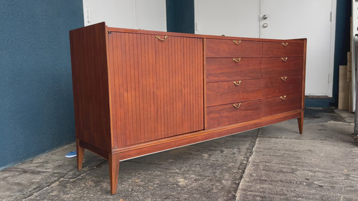 Vintage Mid Century Modern Solid Walnut Dresser with Six Drawers and aCabinet Brass Hardware by Lane Furniture Altavista Line