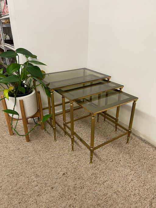 Vintage Mid-Century Modern Smoked Glass Nesting Tables, Set of Three