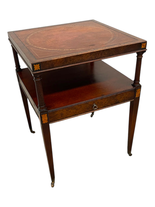 Low stockThis vintage two-tier side table features refined traditional styling and detailed decorative craftsmanship.The top surface includes an inlaid desi...