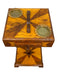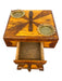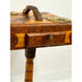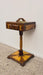 A beautifully detailed example of early 20th-century folk craftsmanship,this vintage smokers stand combines hand-carved ornamentation with intricate inlaid woodwork.The piece features a finely carved horse head drawer pull and geometric marquetry patterns in contrasting tones of light and dark wood.
