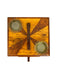 Each surface showcases skilled hand-tooling and careful attention to detail, from the textured carved borders to the dovetail-inspired inlays at each corner. The mix of polished and textured finishes reflects the artisan's ability to merge rustic folk art with precise woodworking technique.The glass ashtrays are intact and removable. Minor surface wear to the woods, typical of age.