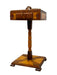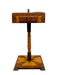 Set a top turned pedestal base with a starburst inlay design, the stand includes a single drawer for storage and a top fitted with two removable pressed glass ashtrays surrounded by scalloped rims. The top also includes a carved wooden handle,adding both balance and functionality to the design.