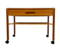 The design includes a single wide drawer with a sculpted wood handle and a contrasting white interior, offering convenient storage for small essentials. Below, a full-width open shelf provides additional surface space for books, décor, or serving needs. Mounted on smooth black casters, the table glides easily from room to room-ideal as a bar cart, nightstand, or mobile work surface.A versatile and timeless piece that embodies the simplicity and functionality of Danish Modern furniture design.