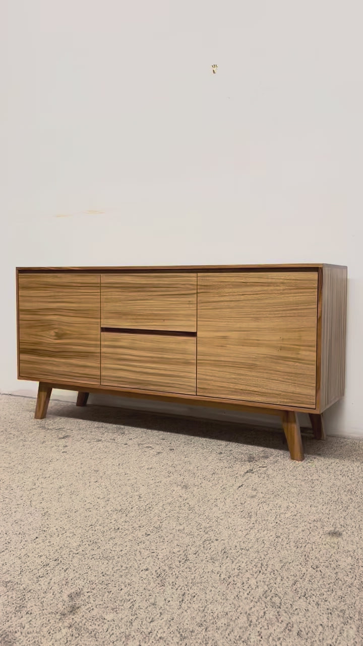 Mid century modern style credenza made using pine wood and parota wood veneer