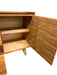 Mid century modern style credenza made using pine wood and parota wood veneer.