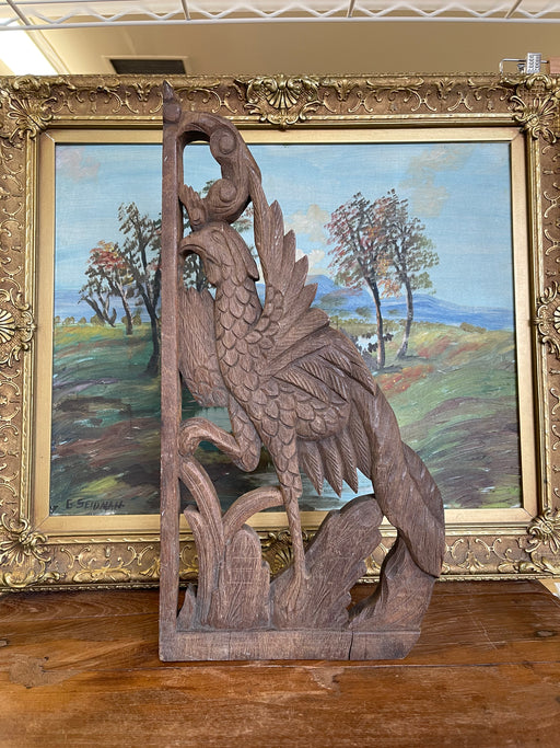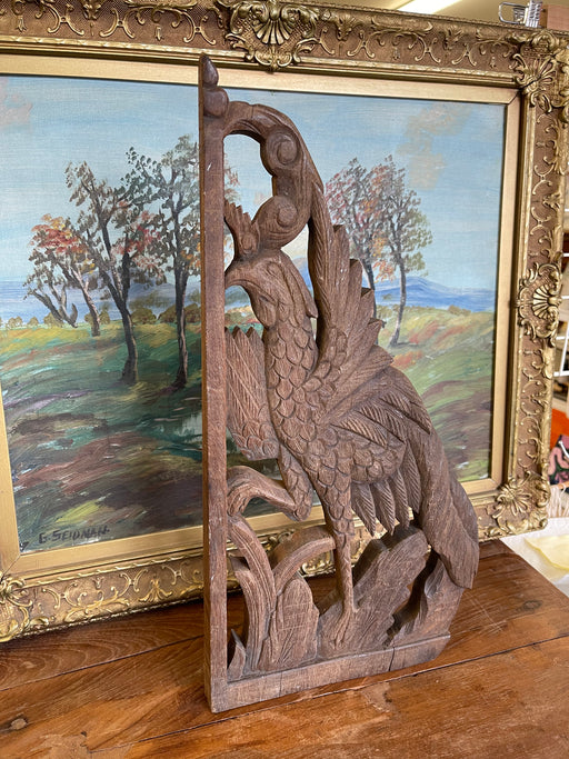Vintage Hand-Carved Wooden Architectural Panel Featuring Bird Motif