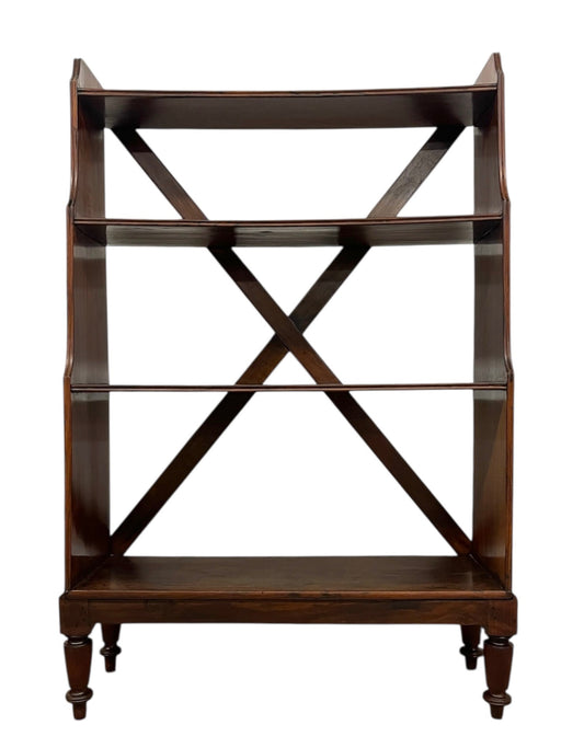 Decrorative Wooden Bookcase with X-Back Support and Turned Legs