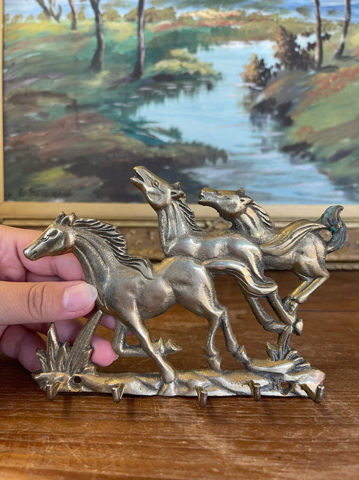 Vintage Brass Toned Galloping Horses Wall Hook Rack - Equestrian Decorative Key or Jewelry Holder