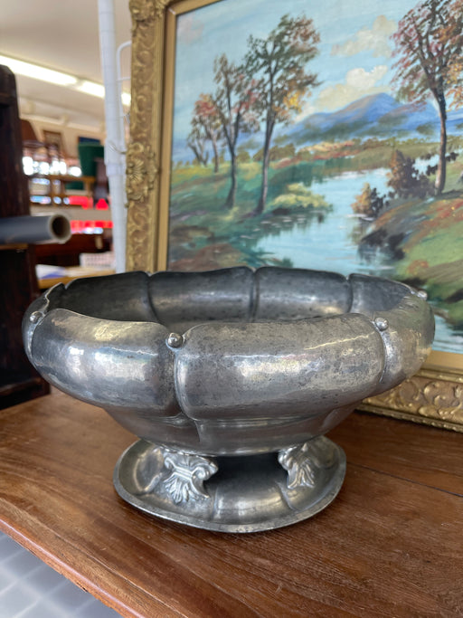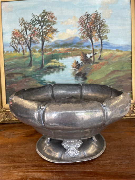 Vintage Footed Metal Toned Centerpiece Bowl - Decorative Pedestal Decorative Dish