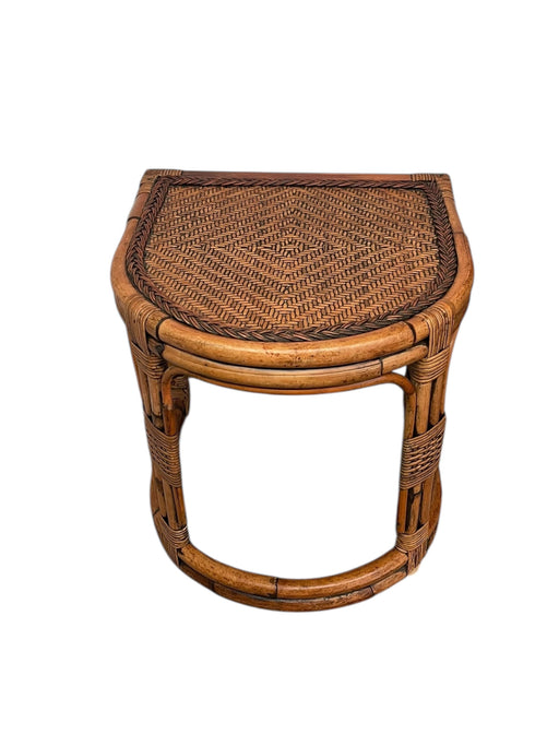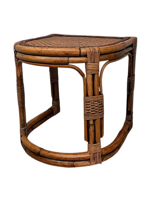 Mid-Century Rattan & Bamboo Accent Table with Woven Wicker Top, Bohemian Style Side Table