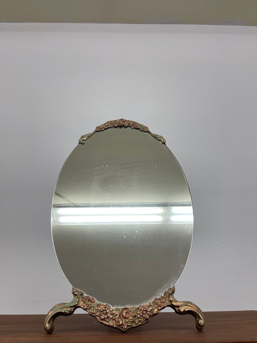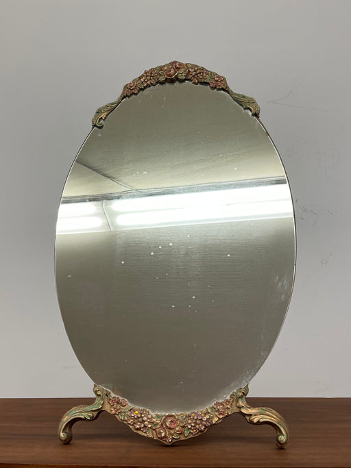 Vintage Oval Vanity Mirror with Hand-Painted Floral Frame and Easel back