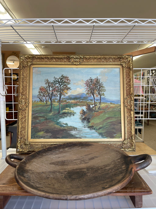Vintage Mid-Century Mountain Landscape Painting in Textured Frame