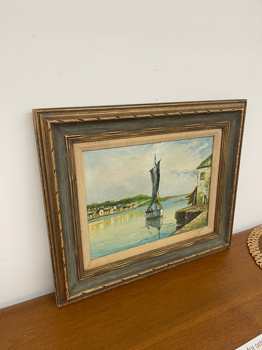 Vintage Mid Century Coastal Harbor Painting Signed “Jay," Framed by Wolsey, California
