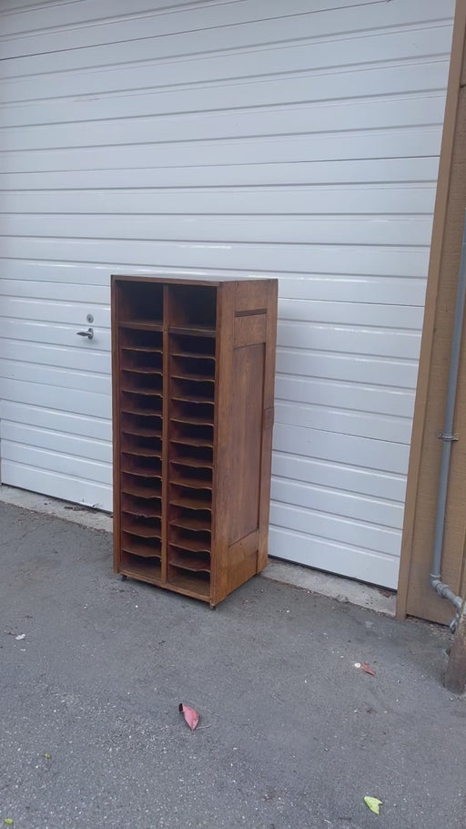 Low stockA vintage oak storage accessory cabinet featuring a tall, narrow profile with fixed shelves and dual compartments.Designed with individual shelf sl...