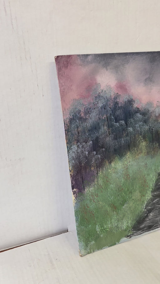 Original Landscape Painting on SoHo Artist Board - Pathway Through Meadow at Sunset,12" x 16"