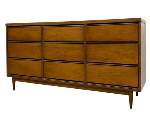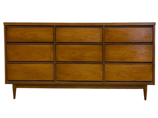Mid Century Modern 9 Drawer Lowboy Dresser with Dovetail Drawers and Tapered Legs