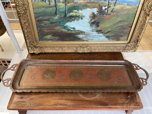 Vintage Hand-Etched Peacock Serving Tray - Made in India