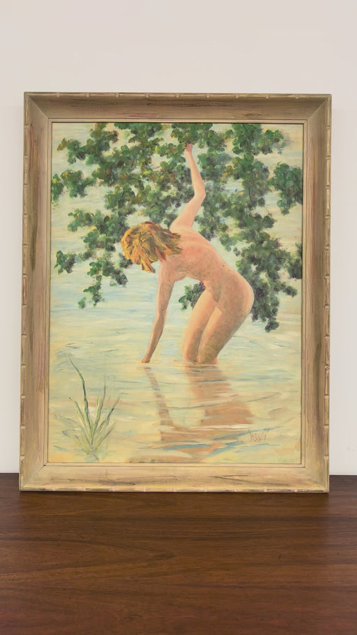 Mid-Century Nude Bathing Scene Painting Signed "Woody," 1958