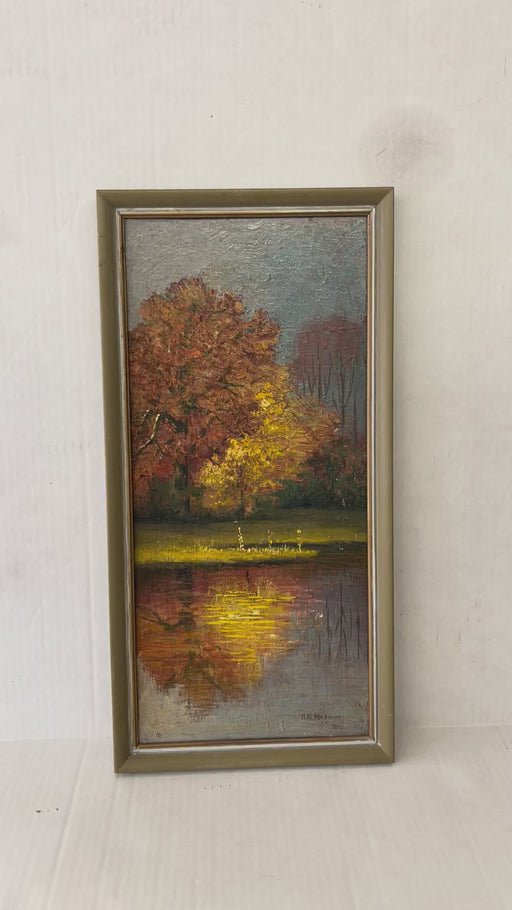 Low stockThis is an original oil painting on board titled Autumn Dress by artist A.B. Mosman, dated 1978. The work captures a serene autumn landscape with r...