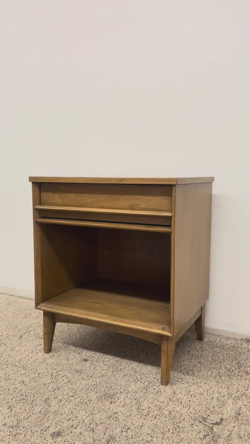 Vintage Mid-Century Modern Nightstand with Drawer and Open Shelf