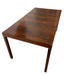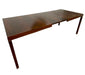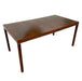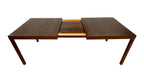 This vintage Mid-Century Modern dining table features a clean, architectural silhouette paired with a practical extensior design. The rectangular tabletop is supported by straight, tapered legs and a simple apron, reflecting the functional and understated aesthetic associated with mid-century modern furniture.