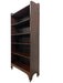 This early 20th-century decorative wooden bookcase features an open-shelf design with five shelves and a raised gallery top, offering generous vertical storage and a warm, timeworn character. Constructed from wood planks, the piece shows visible age throughout-surface wear, finish variation, and natural irregularities that highlight its handmade quality and long-term use.