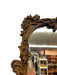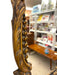 The original mirror glass shows gentle age-appropriate wear consistent with its history, adding depth and authenticity to its reflection. The frame retains its warm gilded finish with areas of patina and minor surface cracks typical of age, highlighting the craftsmanship and natural character of the wood.A timeless statement piece perfect for use as a dressing mirror, entryway accent, or decorative wall centerpiece.